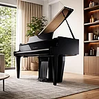 Im Zentrum steht das neue PentaDrive-Soundboard-System: Fünf sorgfältig platzierte Wandler übertragen die Energie direkt auf einen großen Holzresonanzboden. Das erzeugt einen reichen, vollmundigen Klang, der die Projektion eines akustischen Flügels nachbildet.